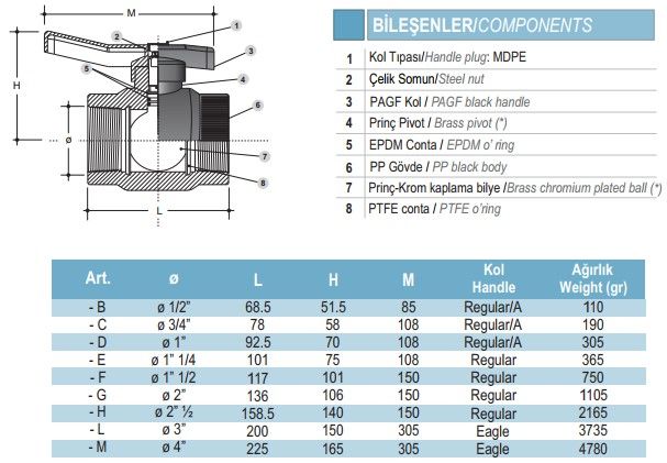 PP Küresel Vanalar tam geçişli dişli vanalardır. Özel kalıplama tekniği sayesinde, gövde tek parça olarak üretilir, bilye ve contalar en zorlu çalışma koşullarında bile yuvalarındanhareket edemez. Ayrıca, malzemeler sıcaklık ve çalışma basınçlarına yüksek düzeyde güvenlik ve direnç sağlar, böylece uzun bir servis ömrü sağlar.