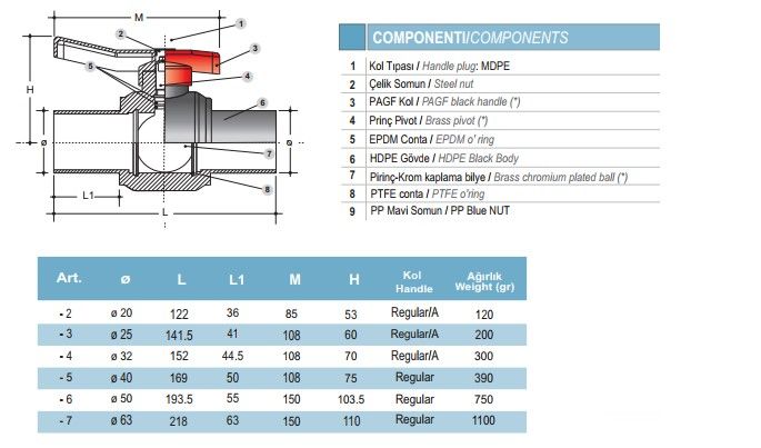 Borular: UNI EN 12201Dişli/threads: BSP(GAS)UNI EN 10226, BS21,AS1722.1 -NPT/NPTANSI-ASMEB1.20.1